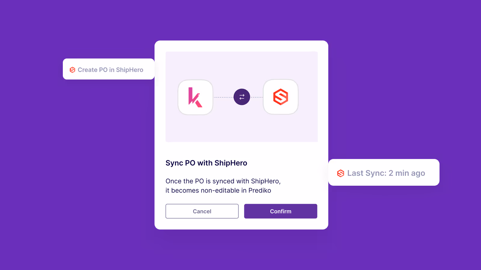 - Connected ecosystem: With 70+ integrations, Prediko connects effortlessly with Shopify, ERPs, 3PLs (like ShipBob), and WMS systems. This means your inventory data is synced in real-time across your entire tech stack.