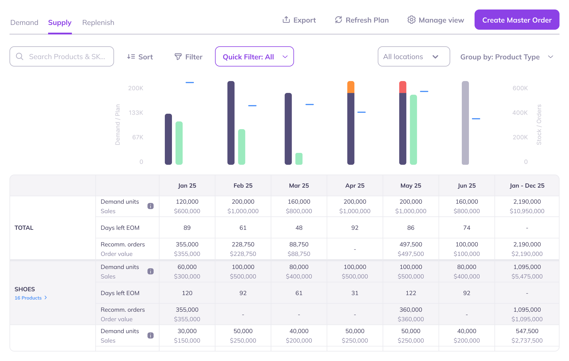 Get a connected planning experience for both Raw Materials and Finished Goods