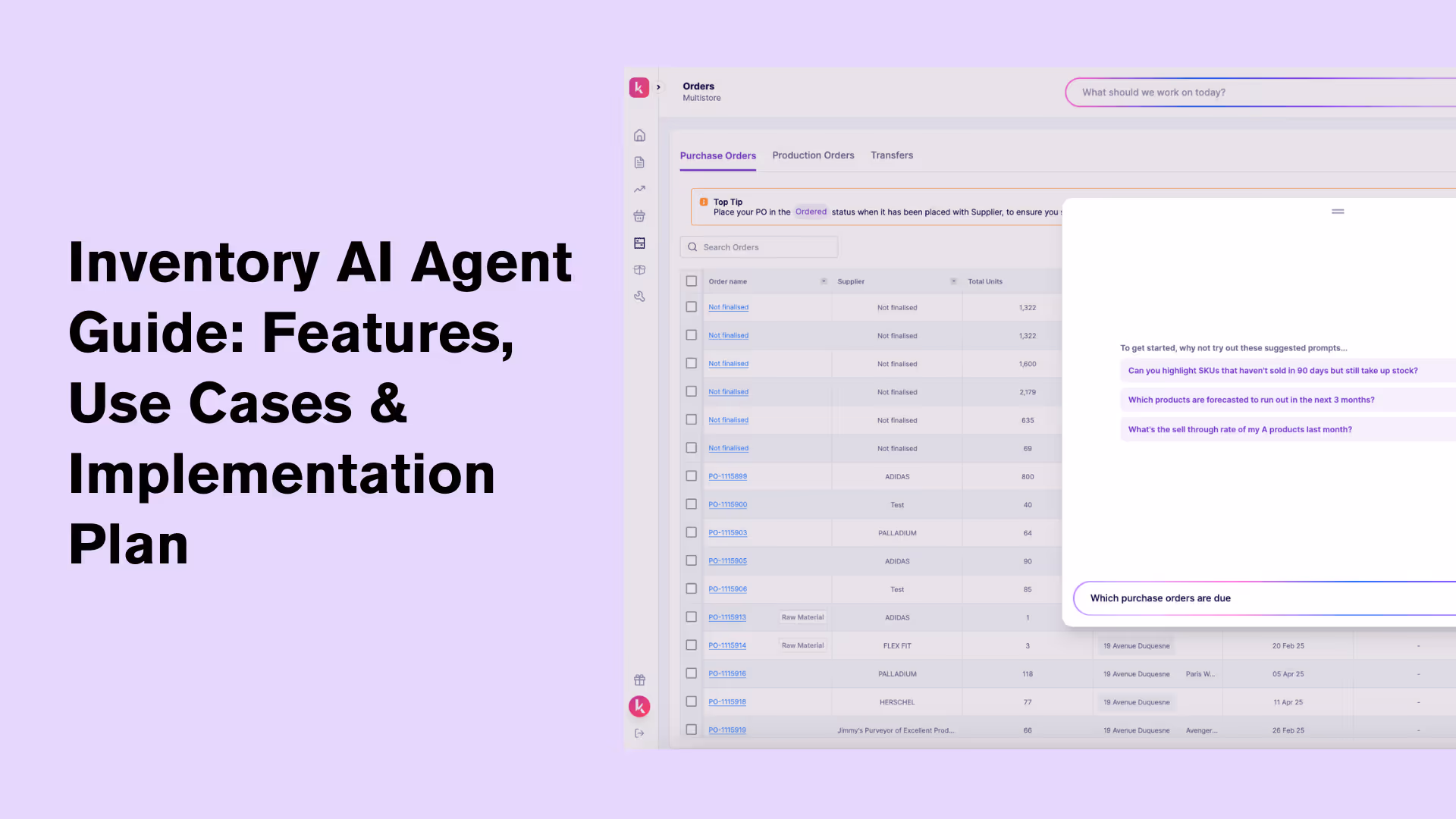 AI can also improve your restocking process by automating purchase order (PO) creation, eliminating the need for manual tracking or reacting to stockouts after the fact.