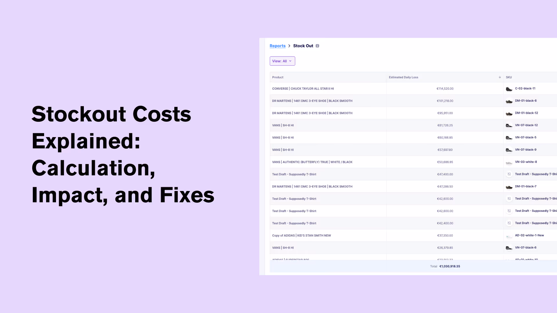- Real-time multi-location inventory visibility: Track stock health across all SKUs, stores, and warehouses with automatically updated dashboards.