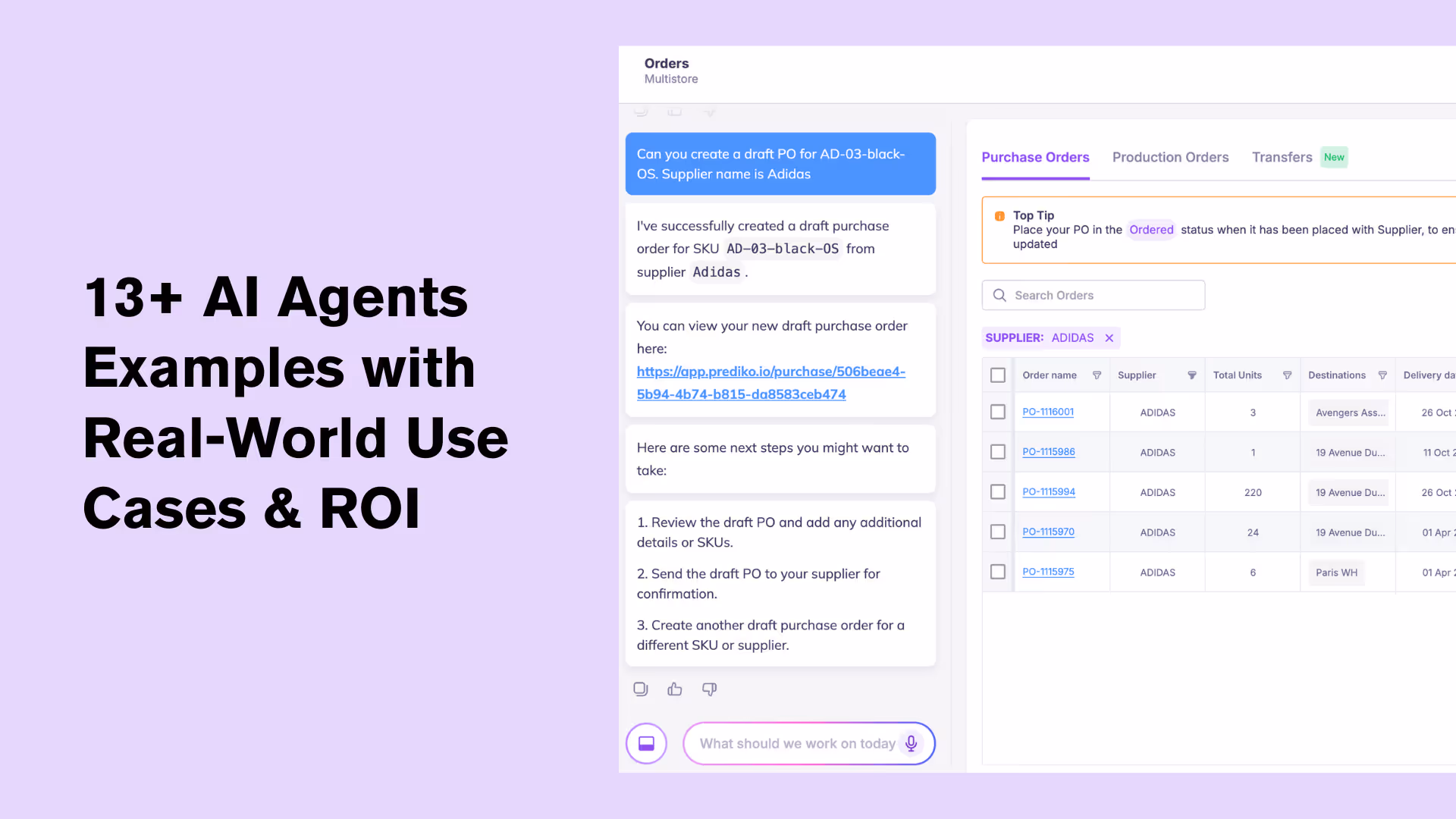 What sets Prediko apart is execution. Instead of navigating multiple screens, teams can use the AI agent to refresh forecasts, create and update purchase orders, manage incoming stock, and generate reports through simple, chat-based commands.