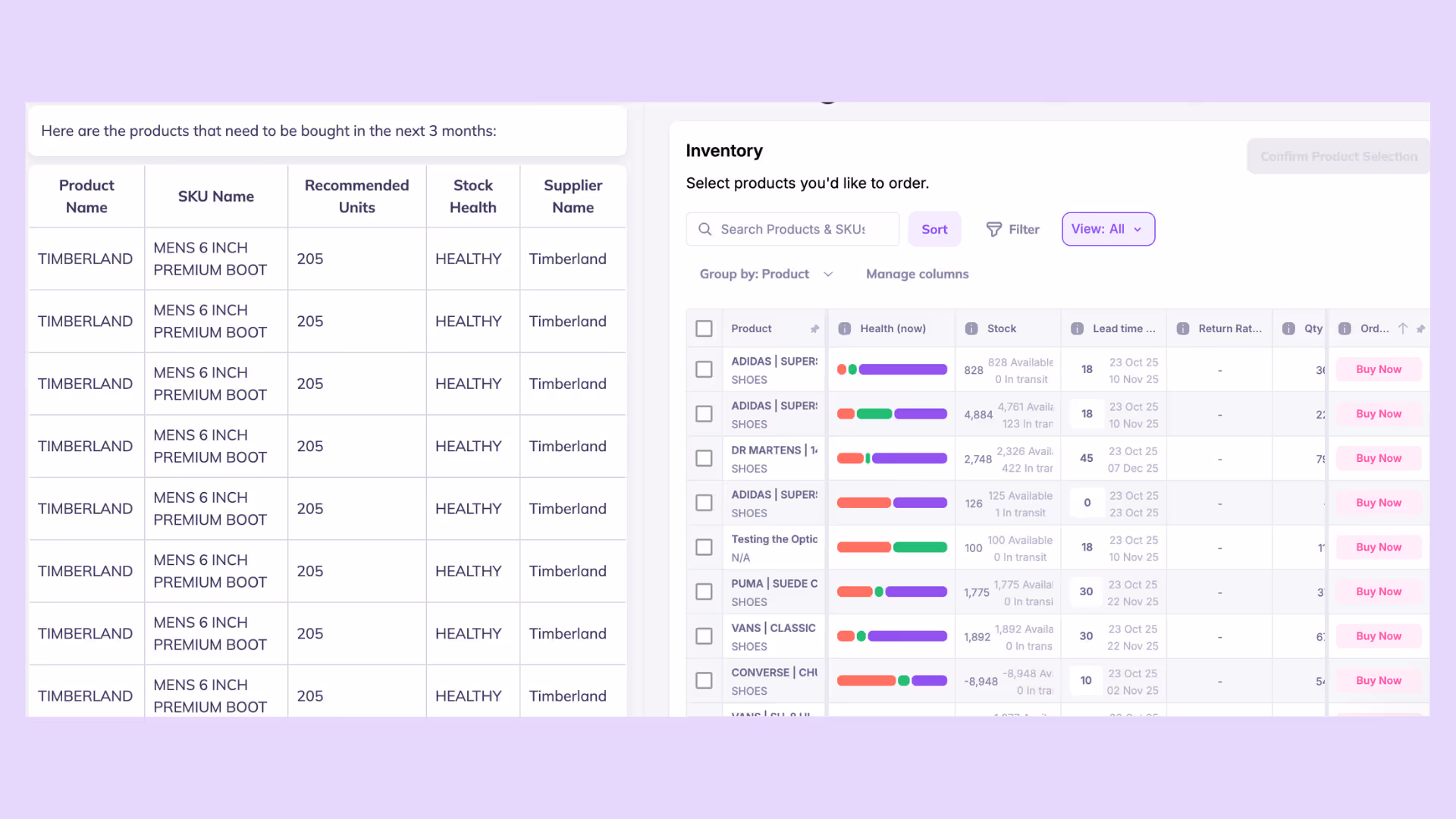 It acts as your in-app inventory co-pilot, helping you forecast demand, create purchase orders, and manage stock using simple natural language commands.