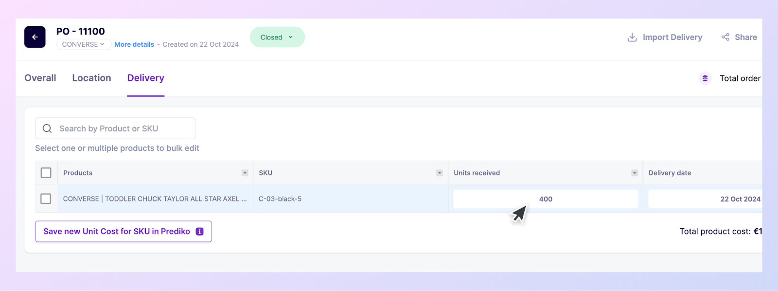 And when a PO is closed within Prediko, brands have the flexibility to mark how many units were received as compared to ordered.