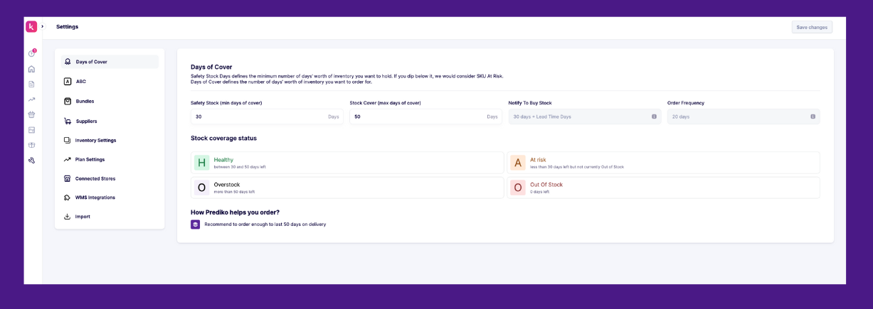 If you’re using Prediko, reorder points are dynamic. Just set your days of cover and safety stock. Prediko adjusts them automatically and sends reorder alerts based on real-time demand.