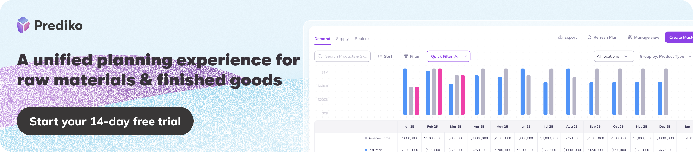 At Prediko, we offer a full featured 14-Day free trial so that you easily make an informed decision. During our onboarding, our customer success manager clarifies how we solve all your raw materials management issues.