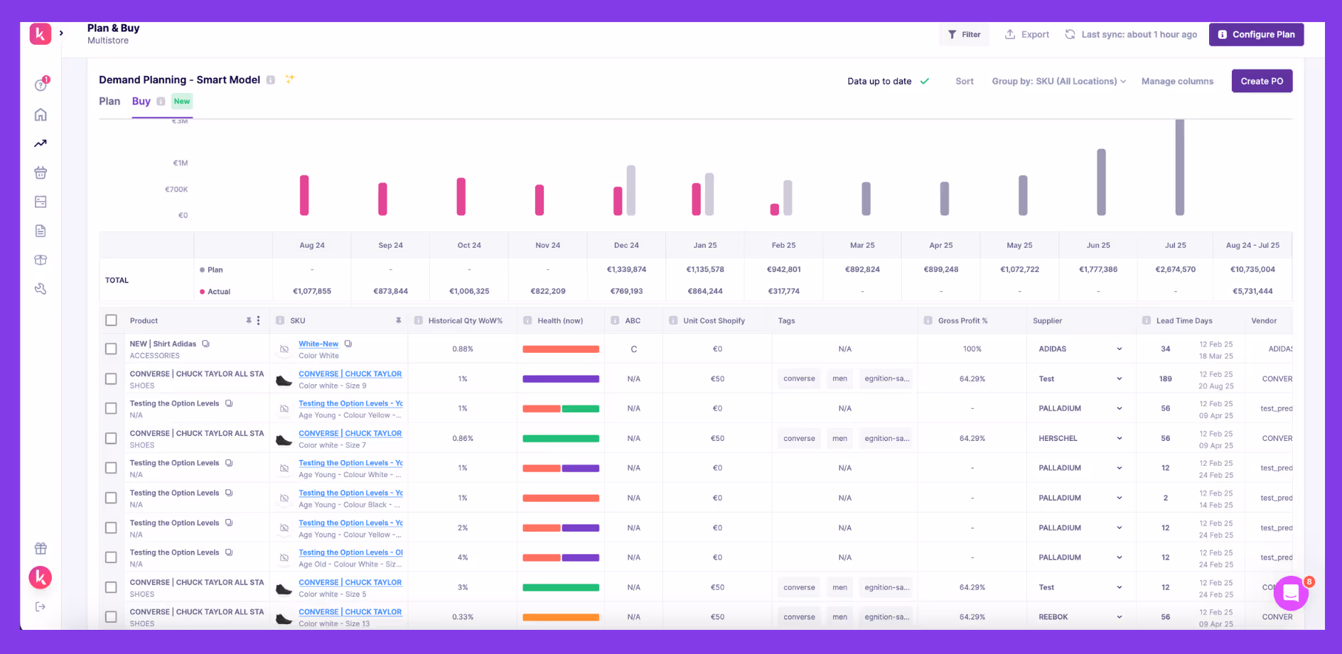 With Prediko’s Buying Table, you get data-backed suggestions to make educated decisions on when to restock, which products to promote, and how to allocate storage space efficiently.