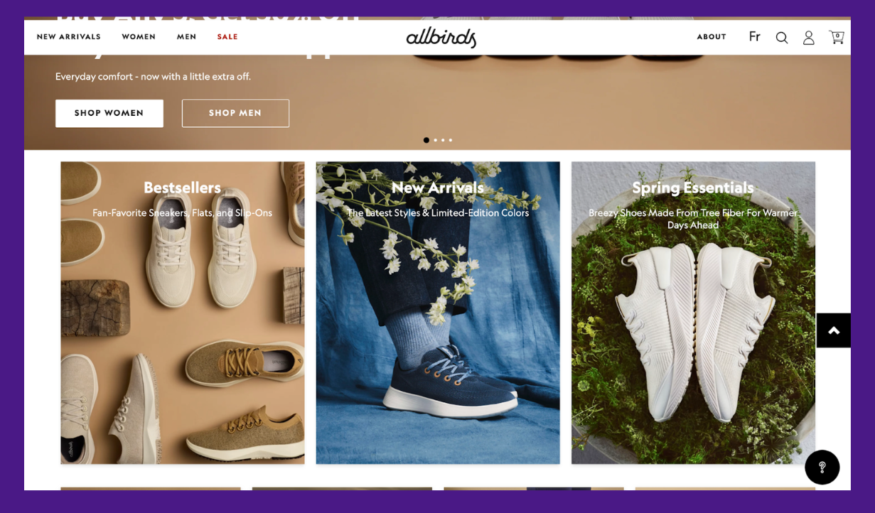 Allbirds is a good example of this. Their European and Canadian storefronts both run on Shopify but have different homepage content specific to each region.