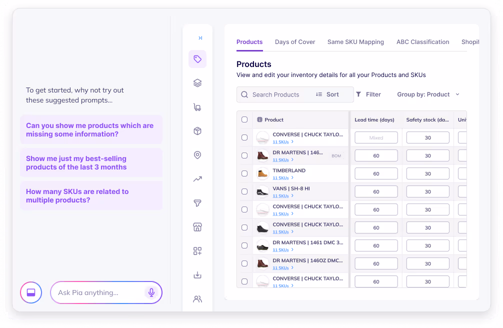 - Track POs, update delivery dates, and monitor inventory health with contextual suggestions for faster decisions.