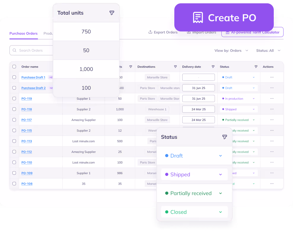 - Enterprise-grade WMS/3PL integrations to automatically sync PO data across all your systems.