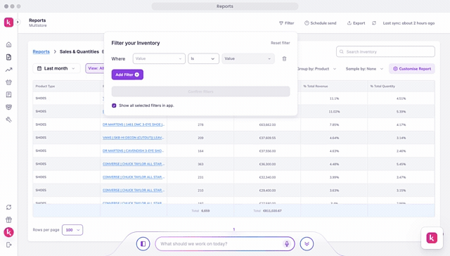 100+ filters to help you drill down your reports