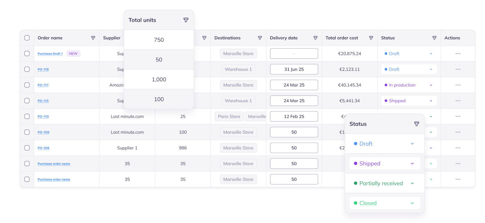 - Feel confident in knowing that every purchase order is accessible in one view.