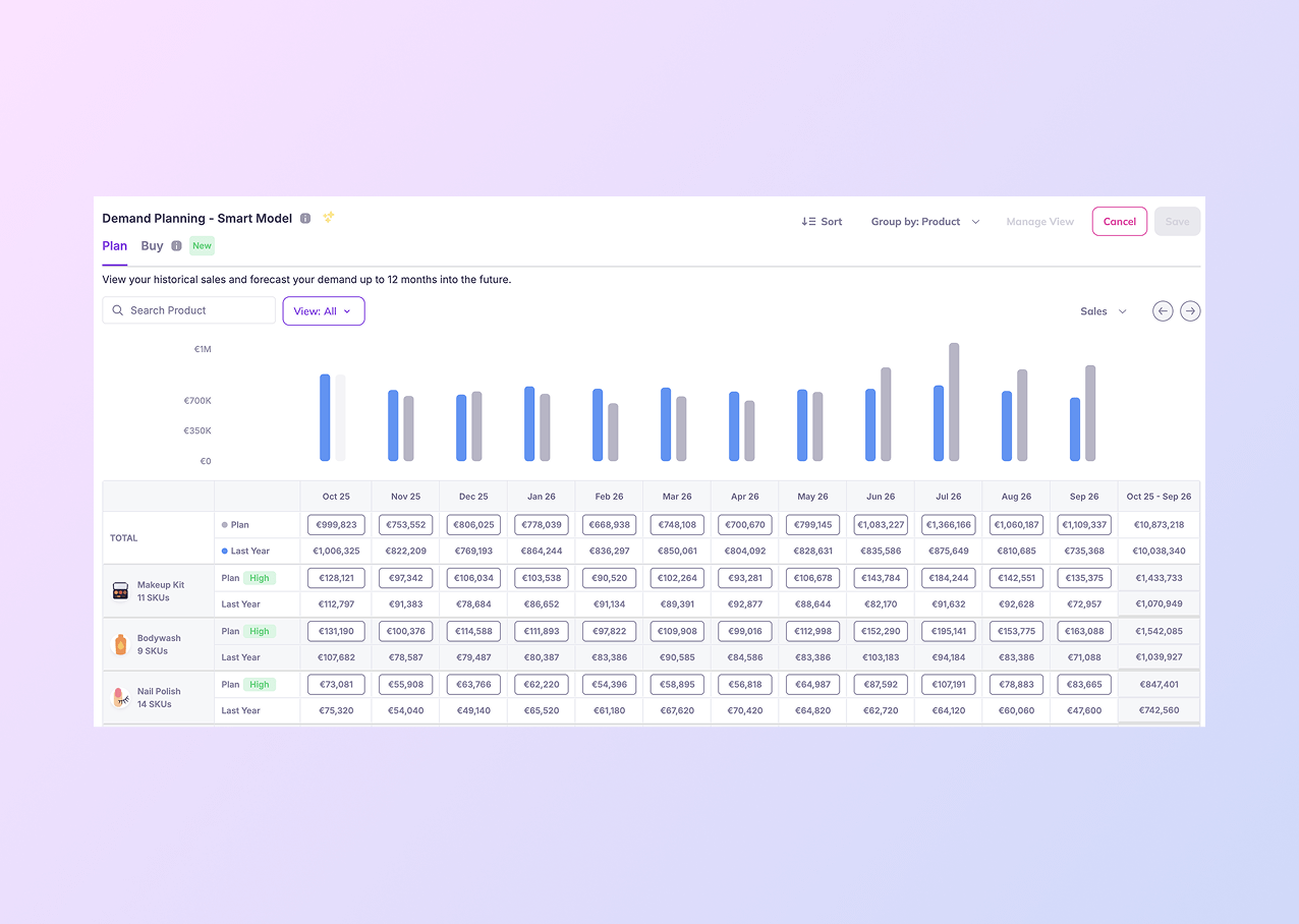 Prediko helps beauty & cosmetics Shopify stores predict demand, order right stock, and hit revenue targets with AI-powered forecasting.